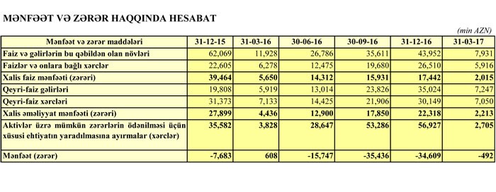 Bu ilin yanvar-mart dövründə Bank Respublikanın cəmi xərcləri 12 milyon 966 min manat təşkil etdiyindən Bankın rüb üzrə əməliyyat mənfəəti 2 milyon 213 min manat təşkil edib. Aktivlər üzrə mümkün zərərlərin ödənilməsi üçün xüsusi ehtiyatın yaradılmasına 2 milyon 705 min manat ayırdığından, Bank ilk rübü -492 min manat zərər ilə bağlayıb.