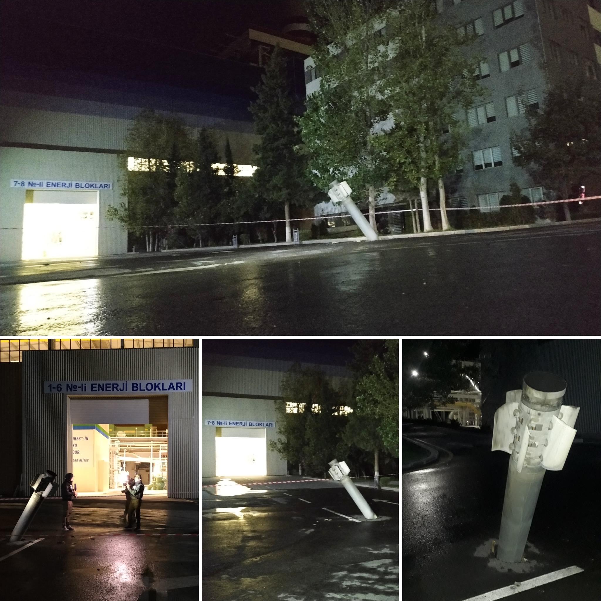 Atılan raketlərdən biri İES-in qarşısına düşüb.Lakin raket partlamayıb.