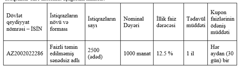 İstiqrazlar üzrə məlumat aşağıdakı kimidir: