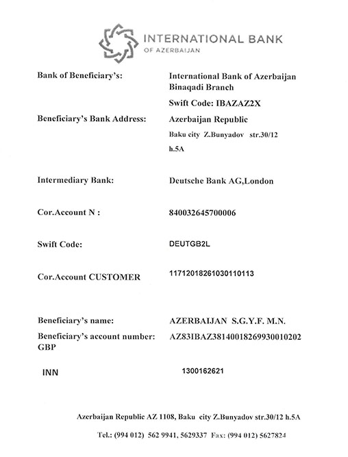 Azərbaycan Ordusuna maliyyə dəstəyinin göstərilməsi ilə bağlı xaricdə yaşayan həmvətənlərimiz tərəfindən Müdafiə Nazirliyinə daxil olan çoxsaylı müraciətlər nəzərə alınaraq Silahlı Qüvvələrə Yardım Fondunun Beynəlxalq bankda mövcud olan Bank hesablarında Türk lirəsi və Böyük Britaniya funt sterlinqi hesabları da əlavə olunub.
