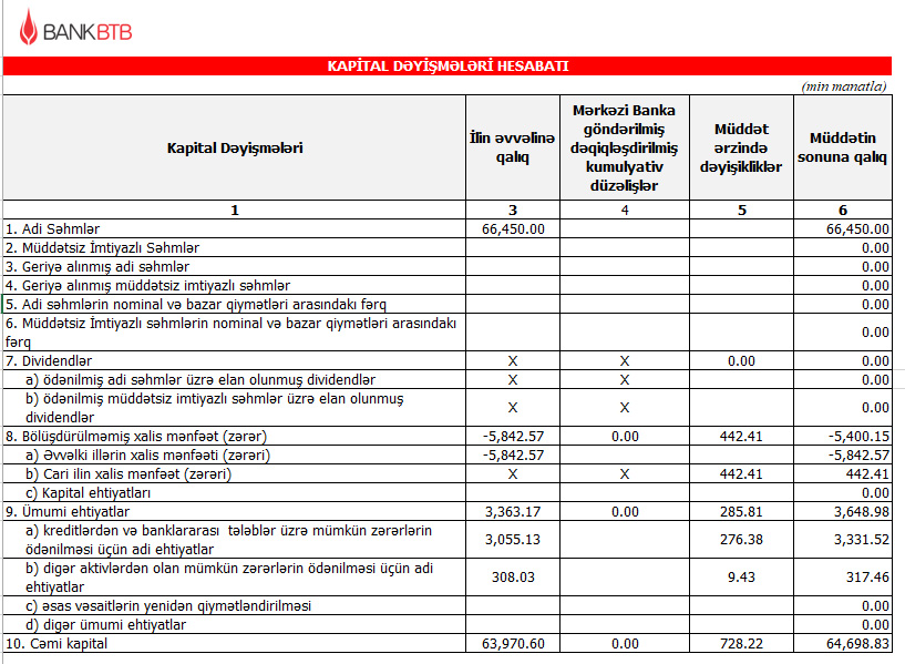 Qeyd edək ki, Bank BTB 2020-ci ilin 9 ayını 442 min manat xalis mənfəət ilə başa vurub.