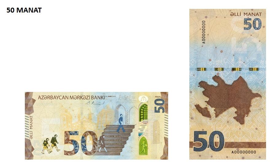 Azərbaycan Mərkəzi Bankı yenilənmiş dizayna və mütərəqqi mühafizə sistemlərinə malik 1, 5 və 50 manatlıq pul nişanlarının 01 yanvar 2021-ci il tarixdən tədavülə buraxılmasını elan edir.