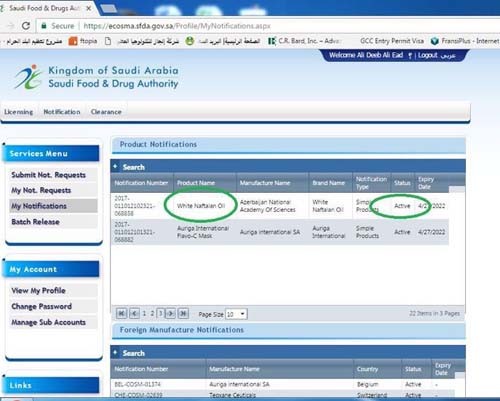 Yeni bir xoş xəbər Səudiyyə Ərəbistanından gəlmişdir. Üç ilə yaxın tədqiqatlardan sonra Səudiyyə Ərəbistanı “Ağ Naftalan yağını” kosmetik vasitə kimi qeydiyyata almış və ölkədə istifadəsinə icazə vermişdir.