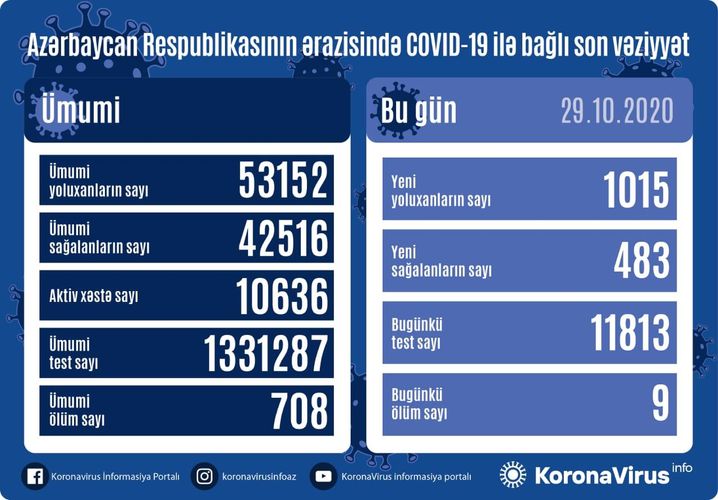 Qeyd edək ki, 28 Oktyabrda 988 yoluxma faktı qeydə alındığı açıqlanmışdı.