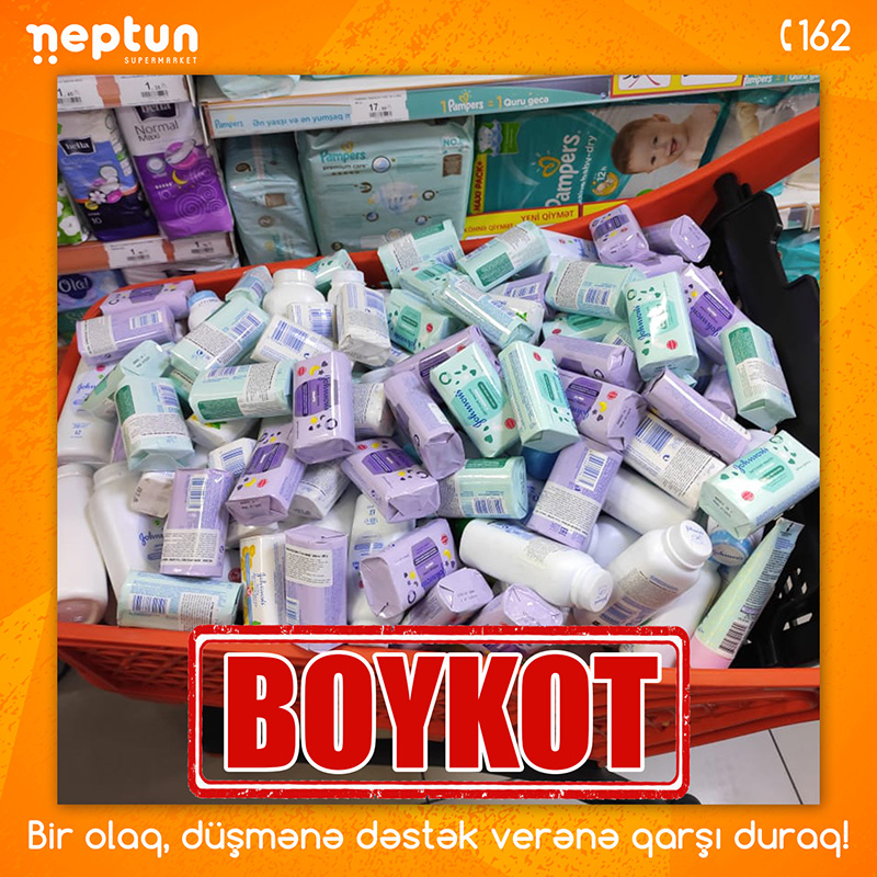 Məlumatda deyilir ki, "NEPTUN” supermarket şəbəkəsi qondarma rejimi açıq dəstəkləyən "Johnson Johnson” şirkətinin bütün məhsullarını satışdan yığışdırıb. Sözügedən şirkət sosial şəbəkələr üzərindən qondarma rejimi dəstəkləyəndən sonra, "NEPTUN” supermarket şəbəkəsinin rəhbərliyi dərhal adekvat addım atmağa qərar verib.