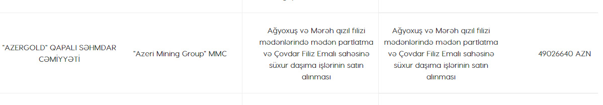 Marja xəbər verir ki, tenderin qalibi "Azeri Mining Group" MMC-dir.