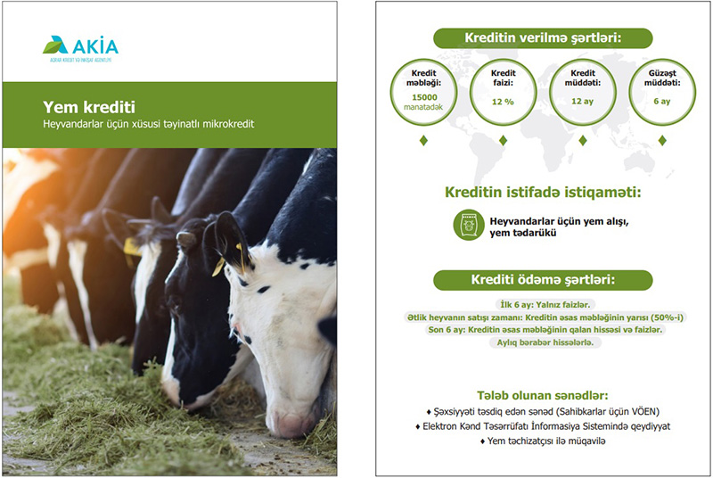 Heyvandarların yem tədarükü və yem alışı üçün nəzərdə tutulmuş mikrokreditlərin güzəşt müddəti 6 aydır. Güzəşt müddətində yalnız kredit faizlərini ödəyən heyvan sahibi 6 aydan sonra kreditin əsas məbləğinin yarısını geri qaytarır. Növbəti 6 ayda isə qalan məbləğ və faizləri bərabər hissələrlə ödəyir.