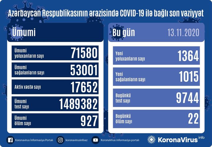 Qeyd edək ki, 12 Noyabrda 1622 yoluxma faktı qeydə alındığı, 20 nəfərin vəfat etdiyi açıqlanmışdı.