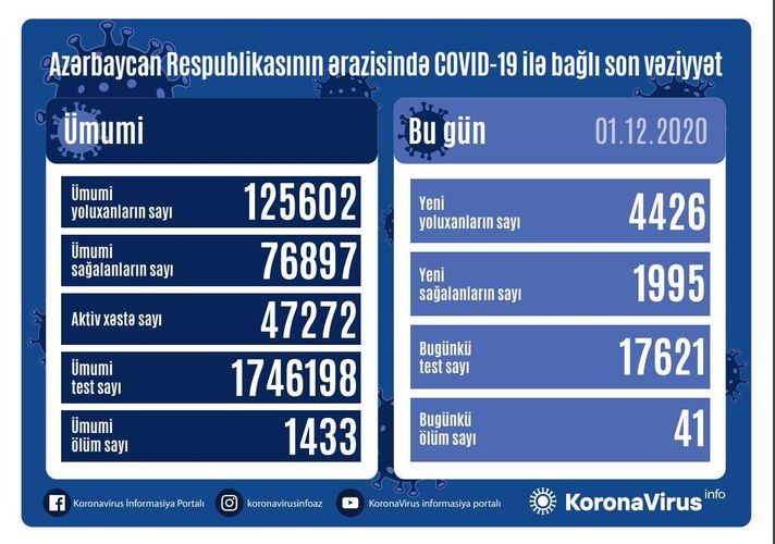 Xatırladaq ki, 30 Noyabr 2020-ci il tarixində son gün ərzində 2981 yoluxma faktı qeydə alındığı açıqlanmışdı