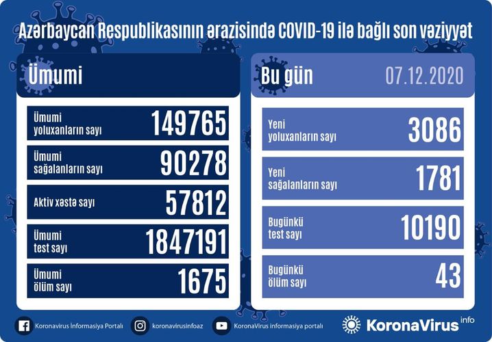 Qeyd edək ki, 06 Dekabr 2020-ci il tarixində isə son gün ərzində 4356 yoluxma faktı qeydə alındığı açıqlanmışdı.