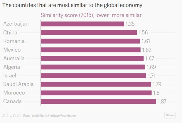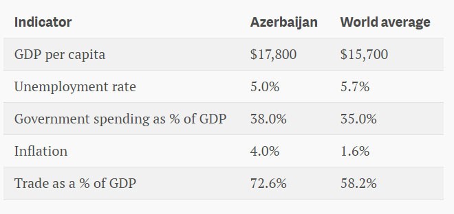 Sayt yazır ki, Azərbaycanın iqtisadi göstəriciləri orta dünya göstəricilərinə ən yaxın göstəricilərdir.Bu qənaətə 156 ölkənin beş əsas iqtisadi göstəricisinin təhlilindən sonra gəlinib.