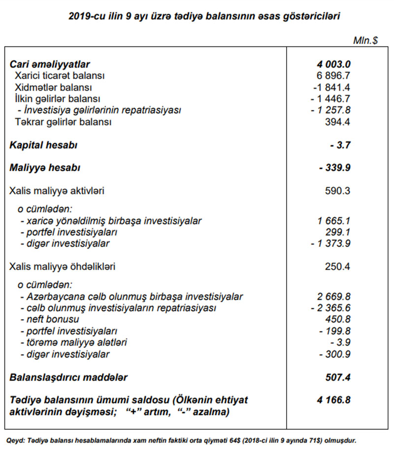 Marja xəbər verir ki, bu Azərbaycan Mərkəzi Bankın dərc etidiy tədiyə balansının məlumatında qeyd olunur.