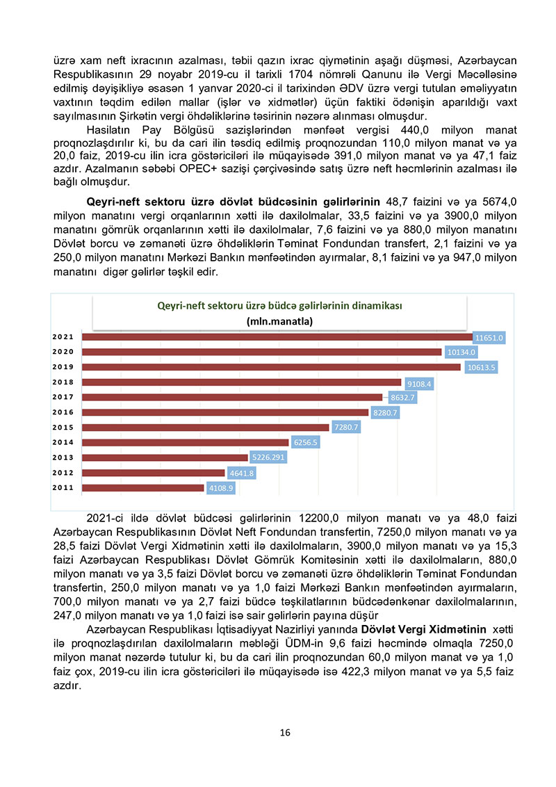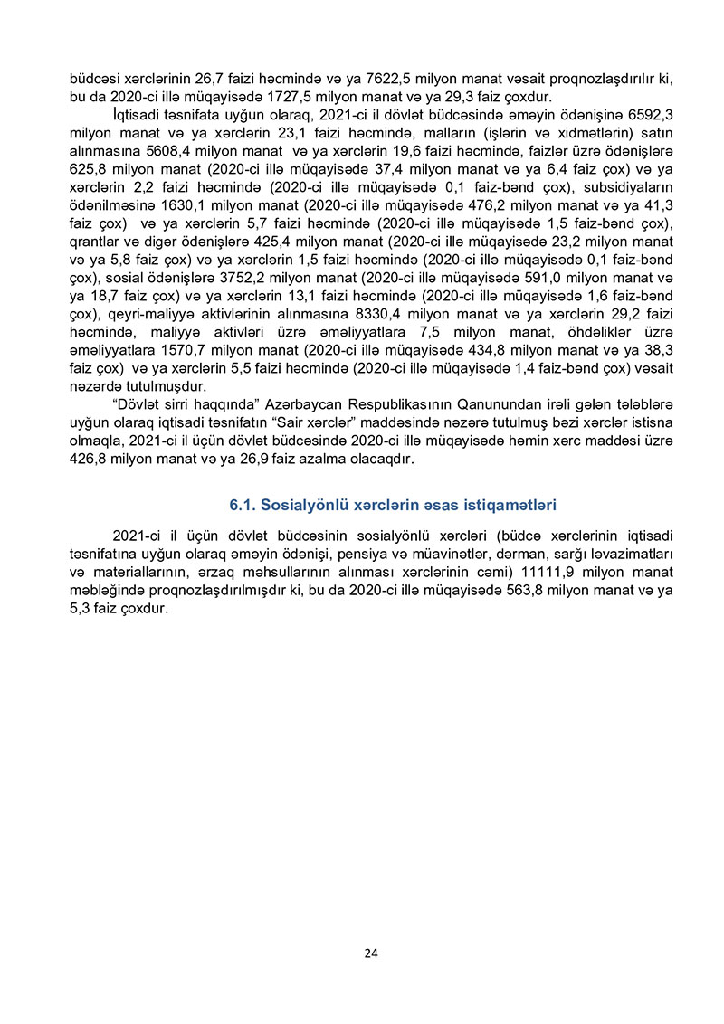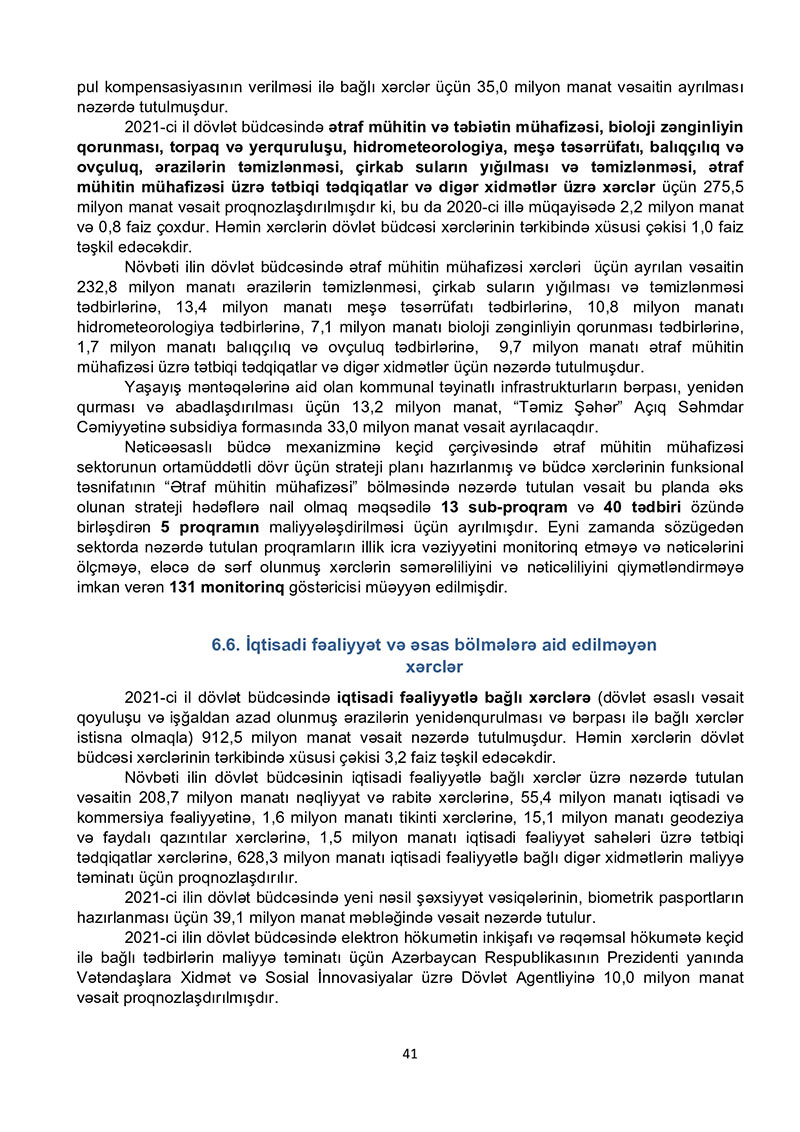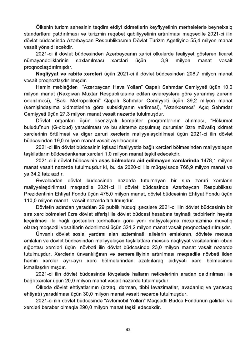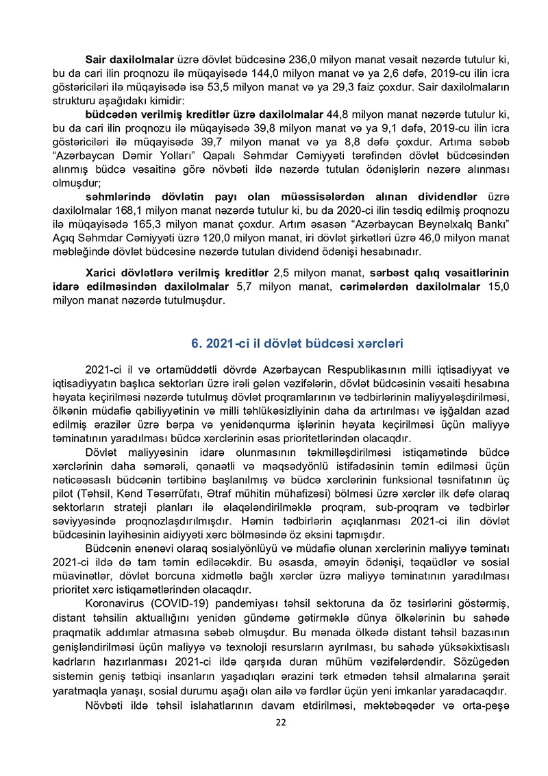 “Azərbaycan Respublikasının 2021-ci il dövlət büdcəsi haqqında” Azərbaycan Respublikasının Qanun 2021-ci il dövlət büdcəsi layihəsinə dair İZAHAT