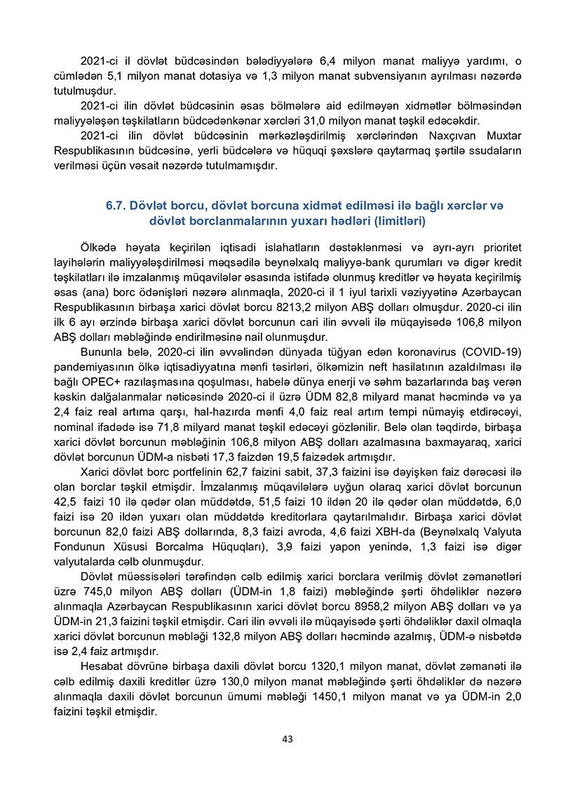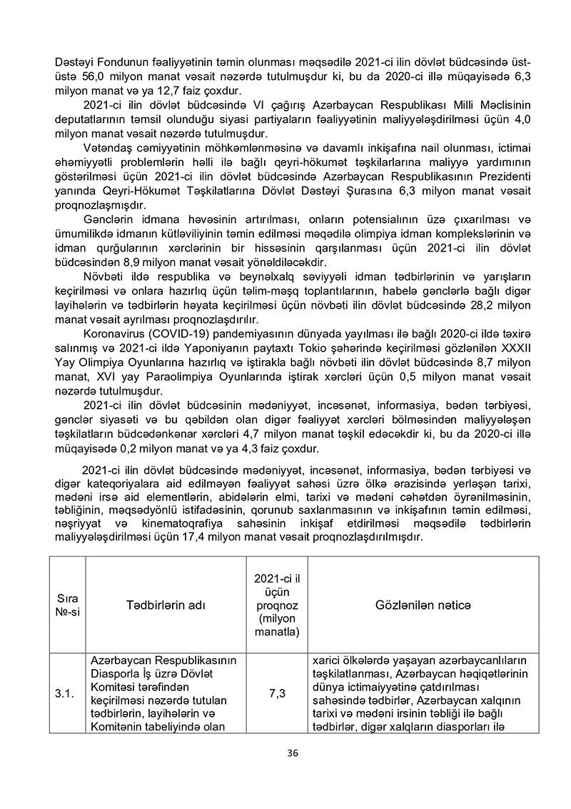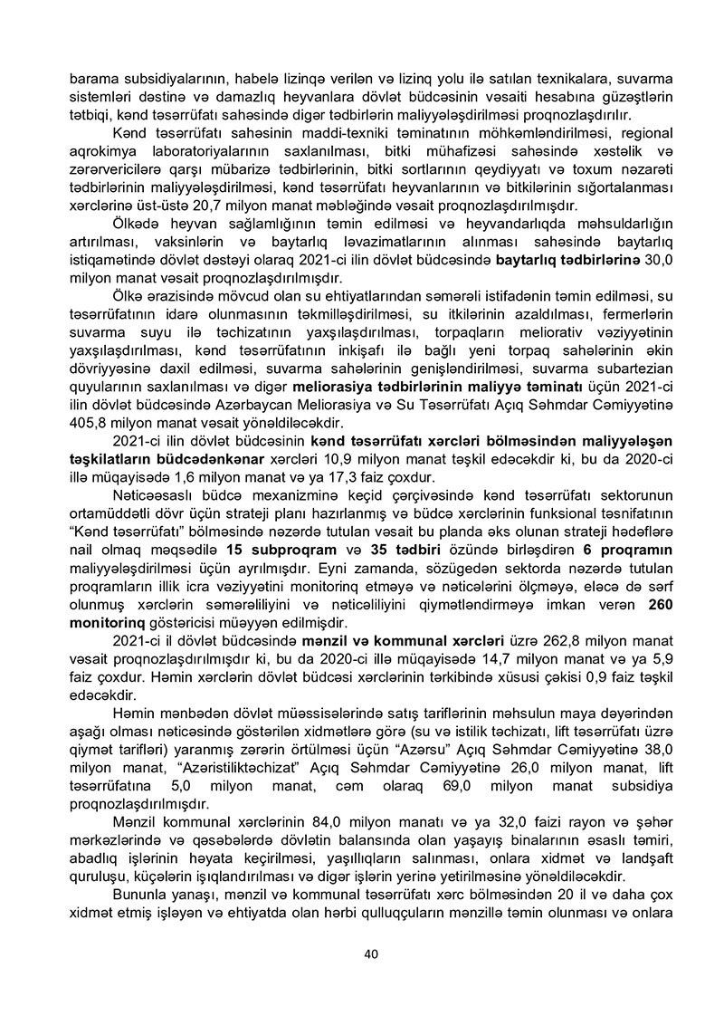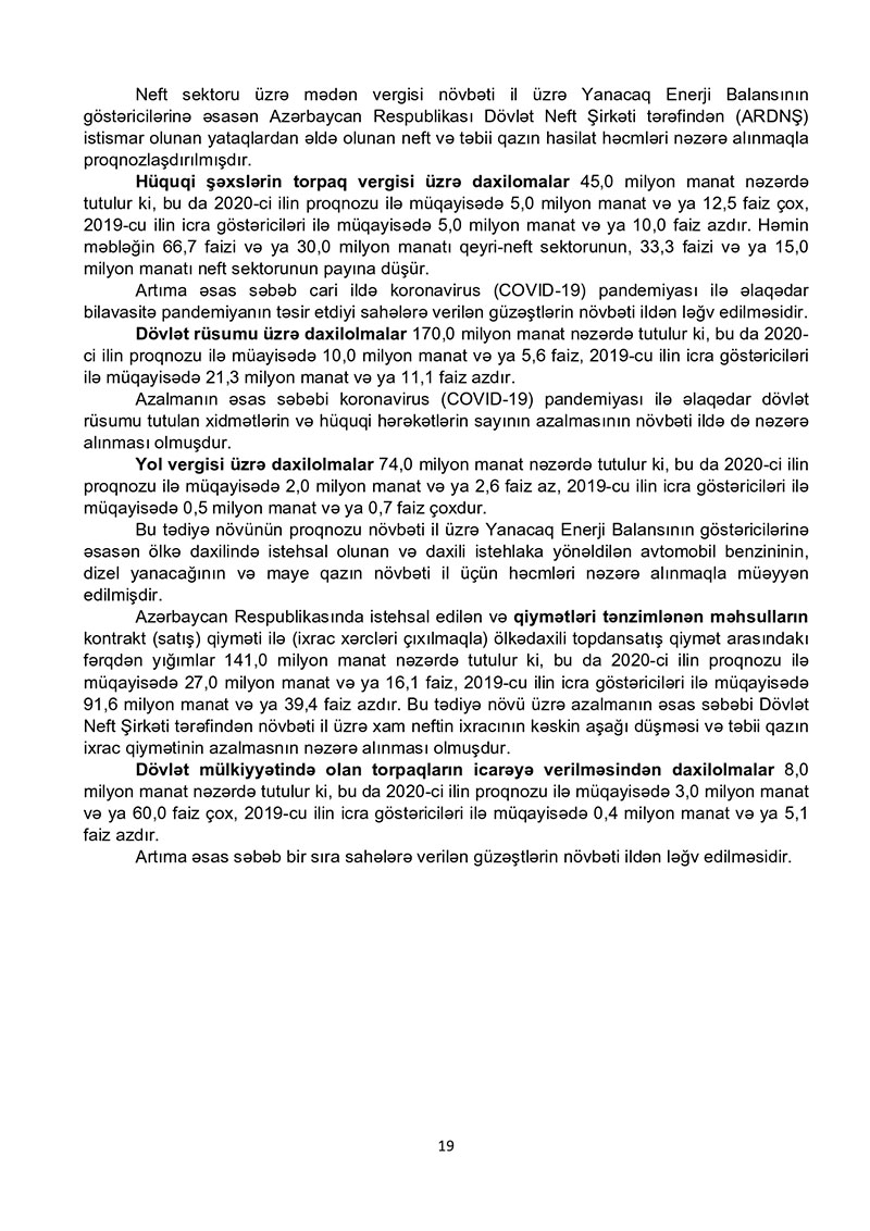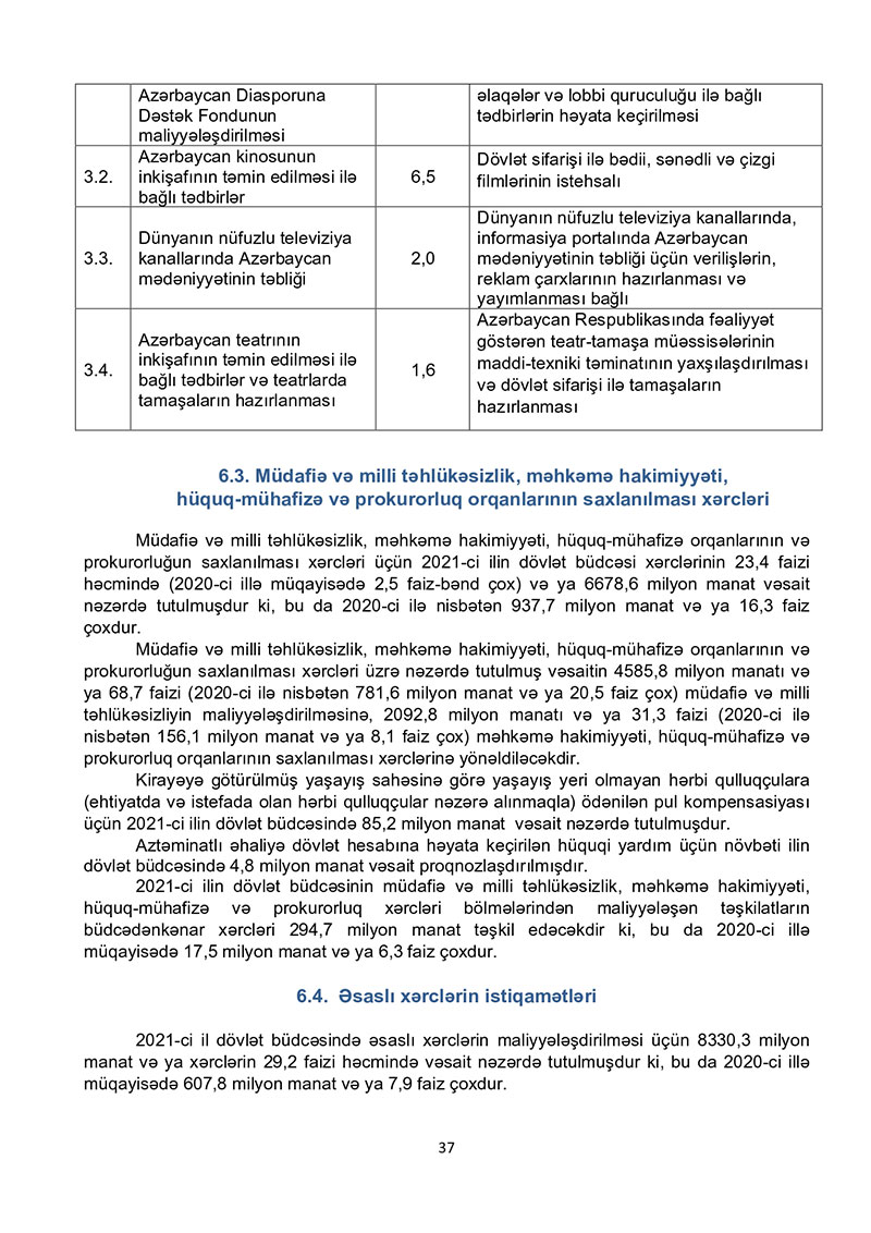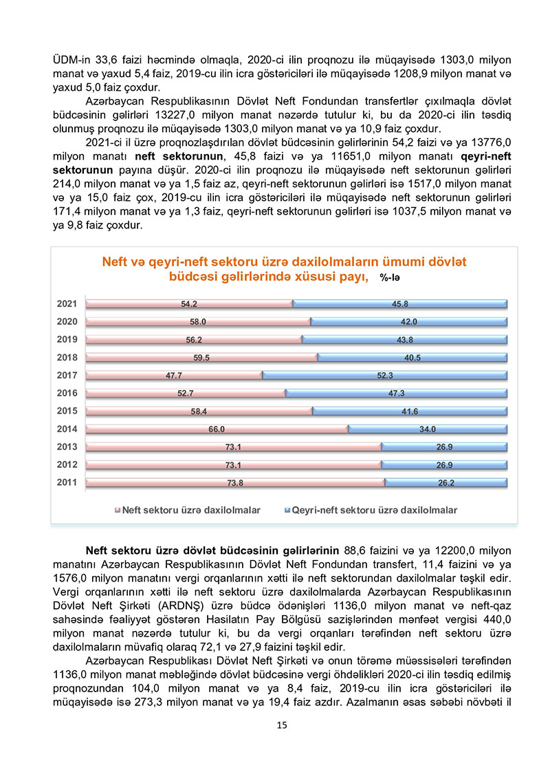 “Azərbaycan Respublikasının 2021-ci il dövlət büdcəsi haqqında” Azərbaycan Respublikasının Qanun 2021-ci il dövlət büdcəsi layihəsinə dair İZAHAT
