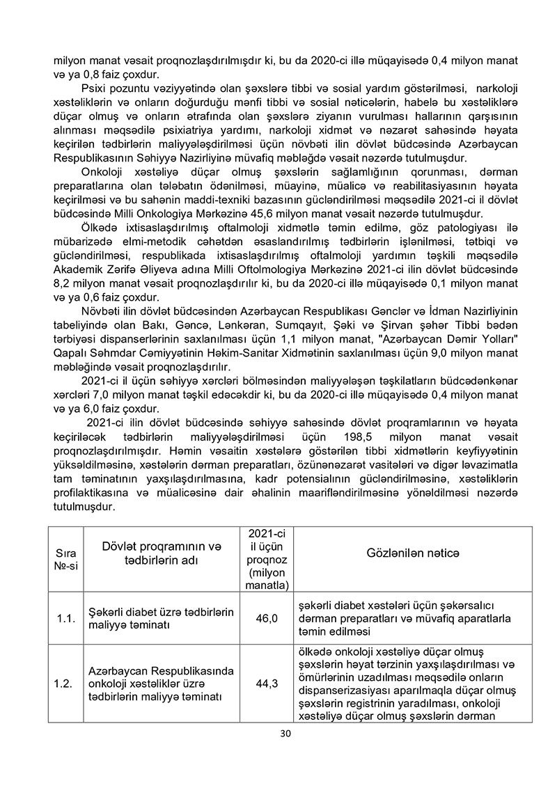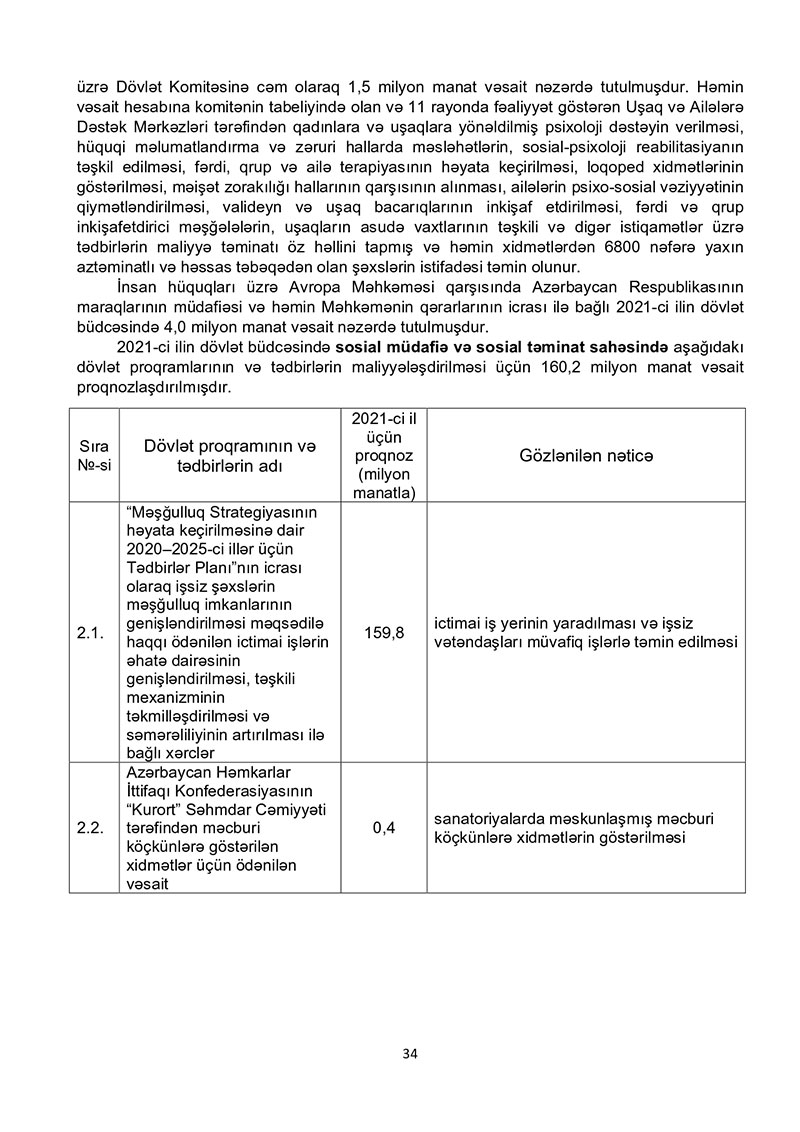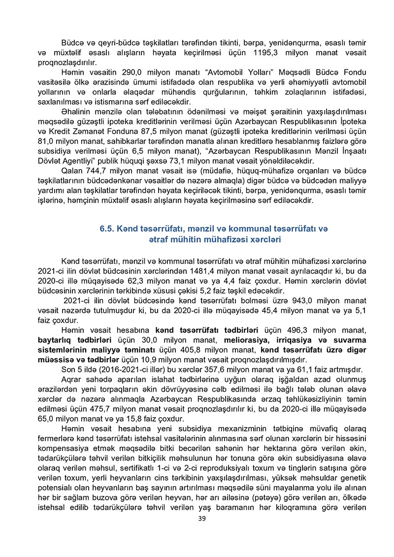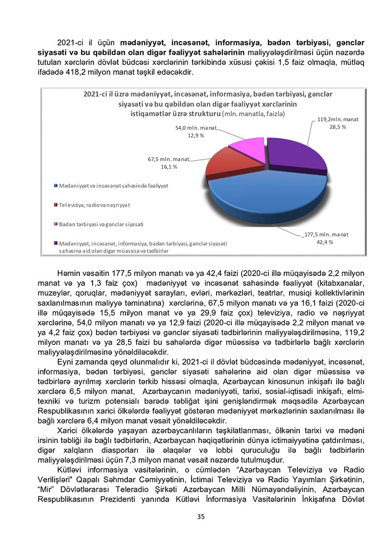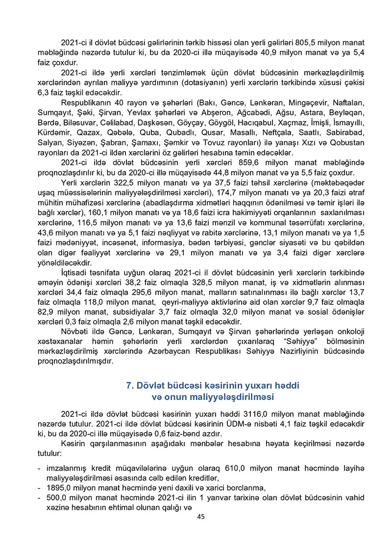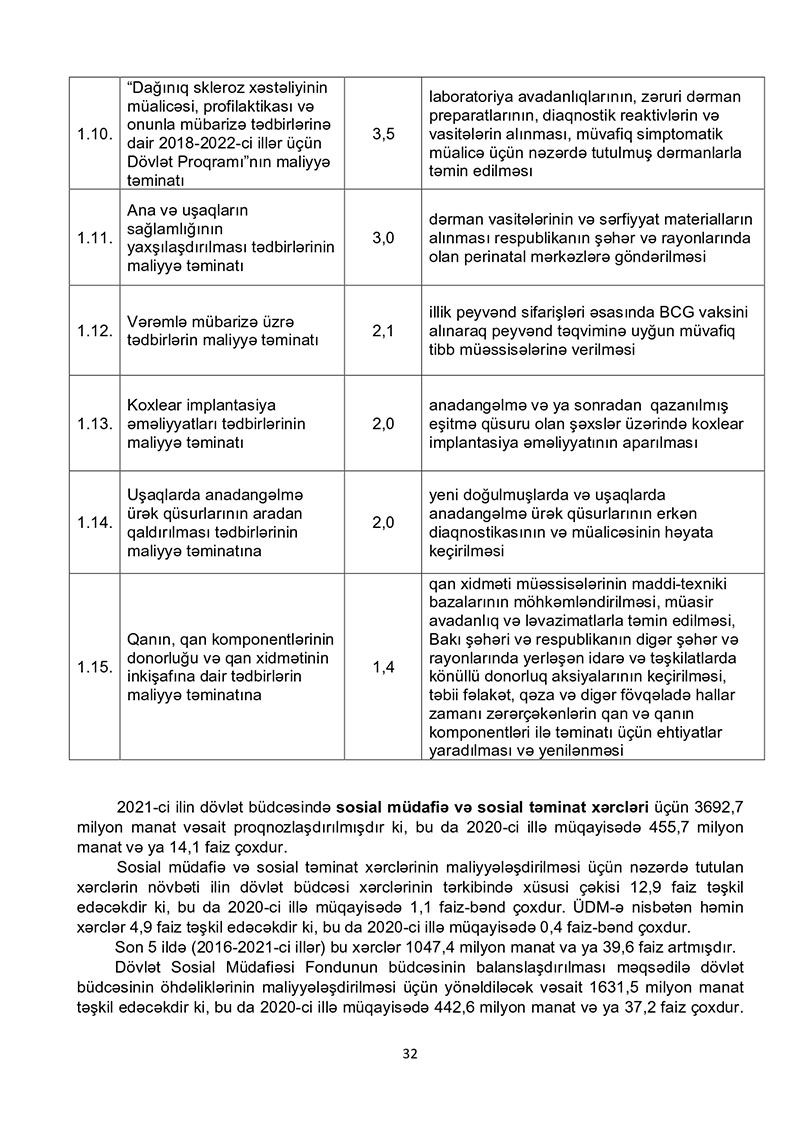 “Azərbaycan Respublikasının 2021-ci il dövlət büdcəsi haqqında” Azərbaycan Respublikasının Qanun 2021-ci il dövlət büdcəsi layihəsinə dair İZAHAT