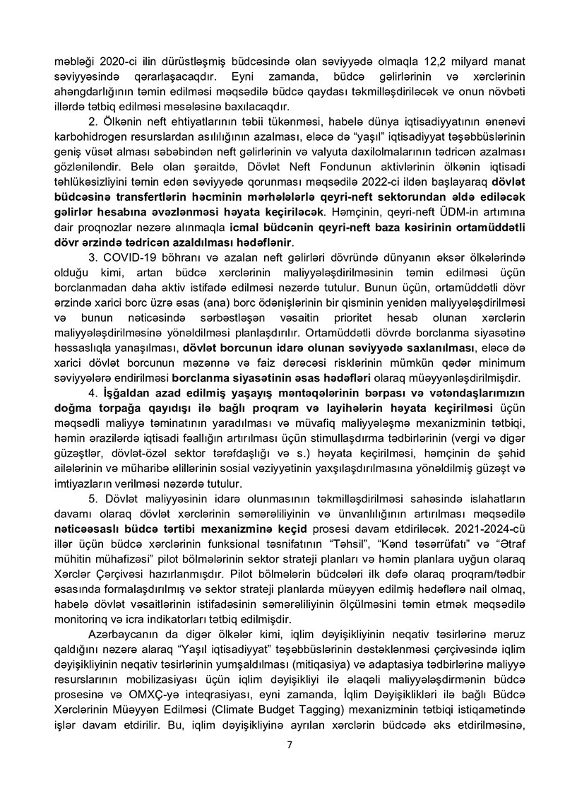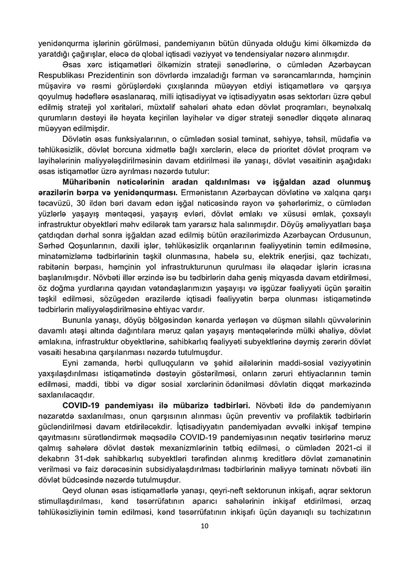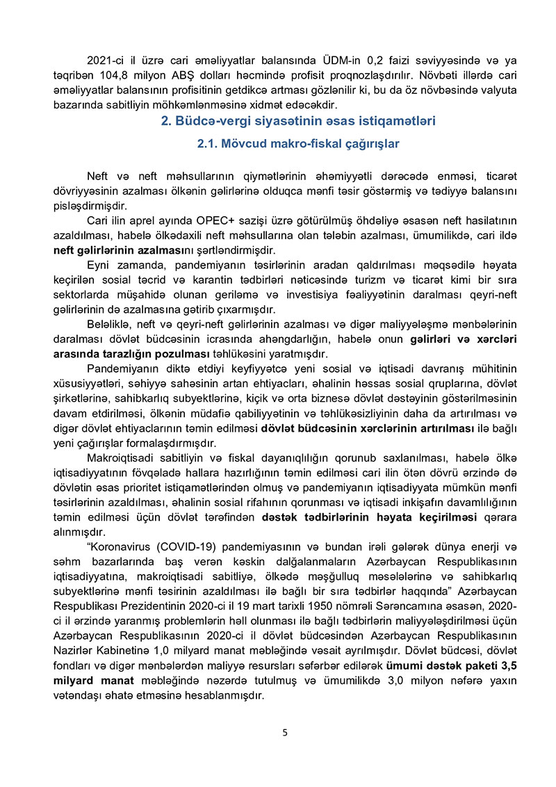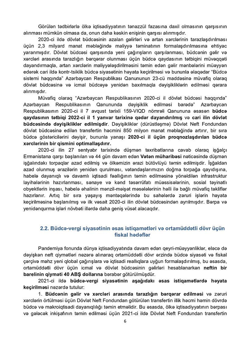 2021-ci il dövlət büdcəsi layihəsinə dair izahat - TAM VERSİYA