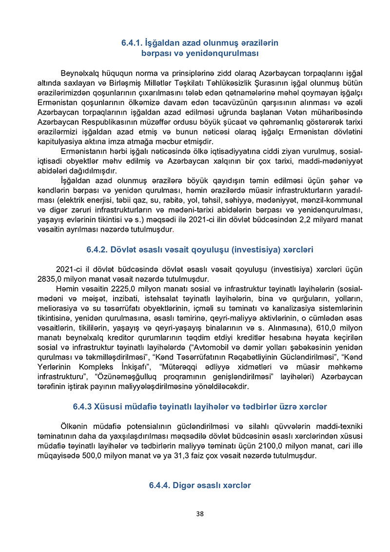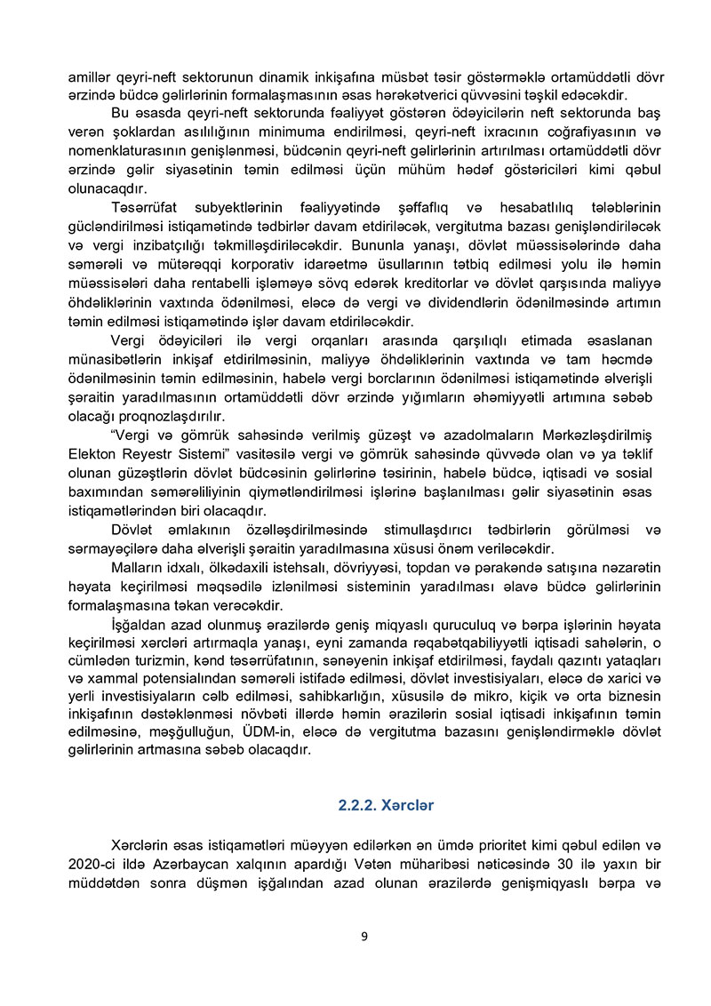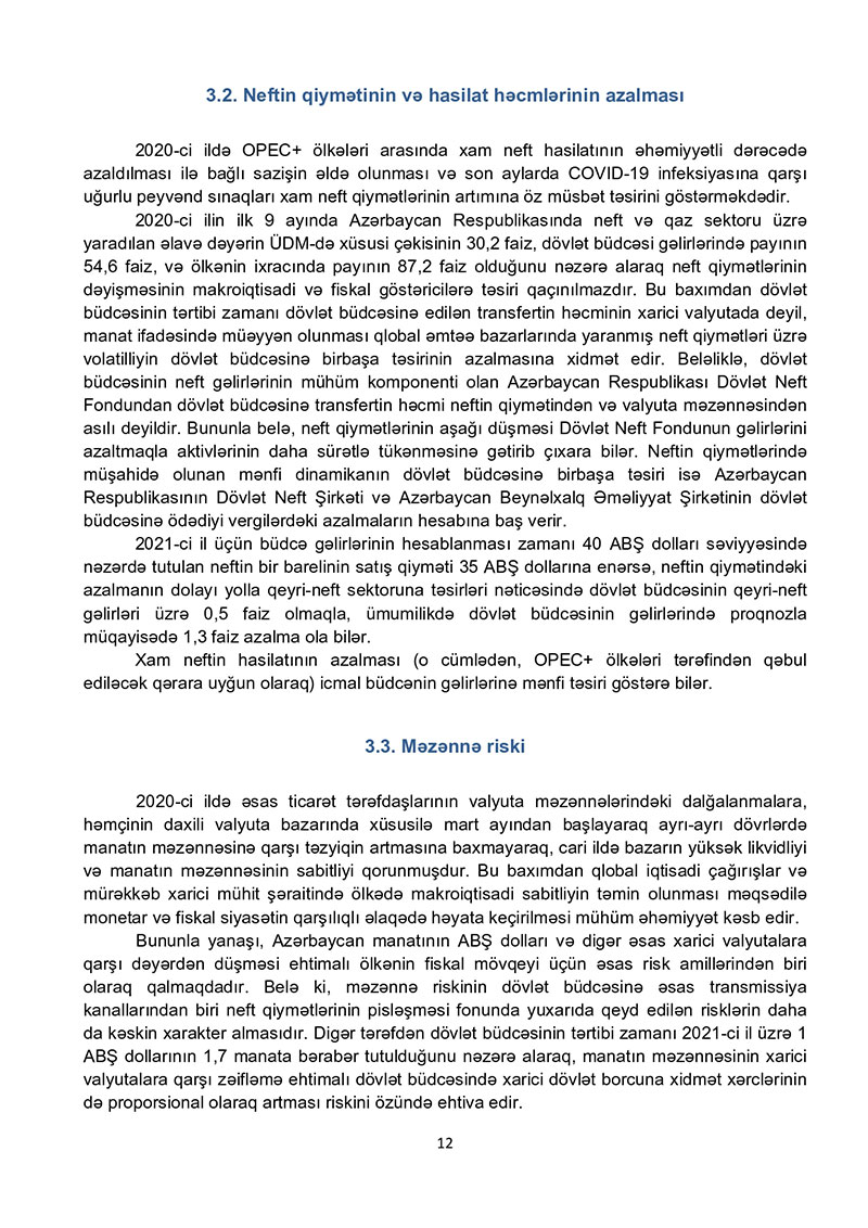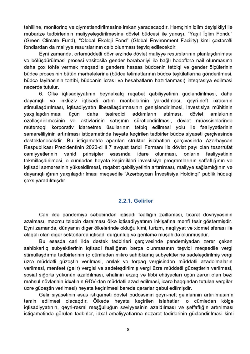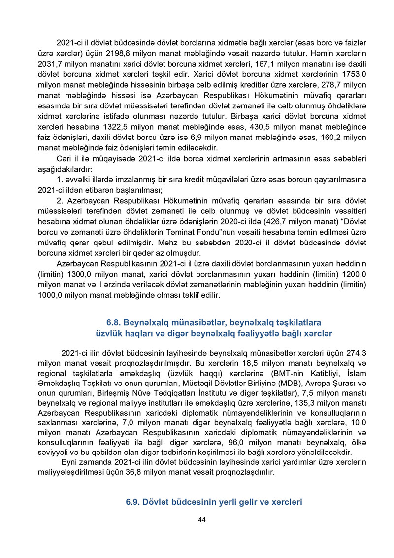 2021-ci il dövlət büdcəsi layihəsinə dair izahat - TAM VERSİYA