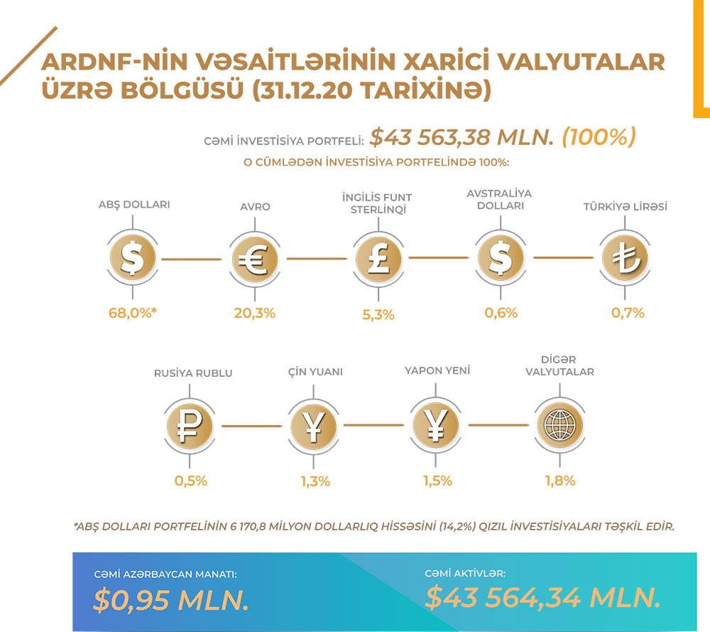 Azərbaycan Respublikası Dövlət Neft Fondu 2020-ci üzrə investisiya fəaliyyətinin yekunlarını açıqlayıb. Marja Fonda istinadən təqdim edir.