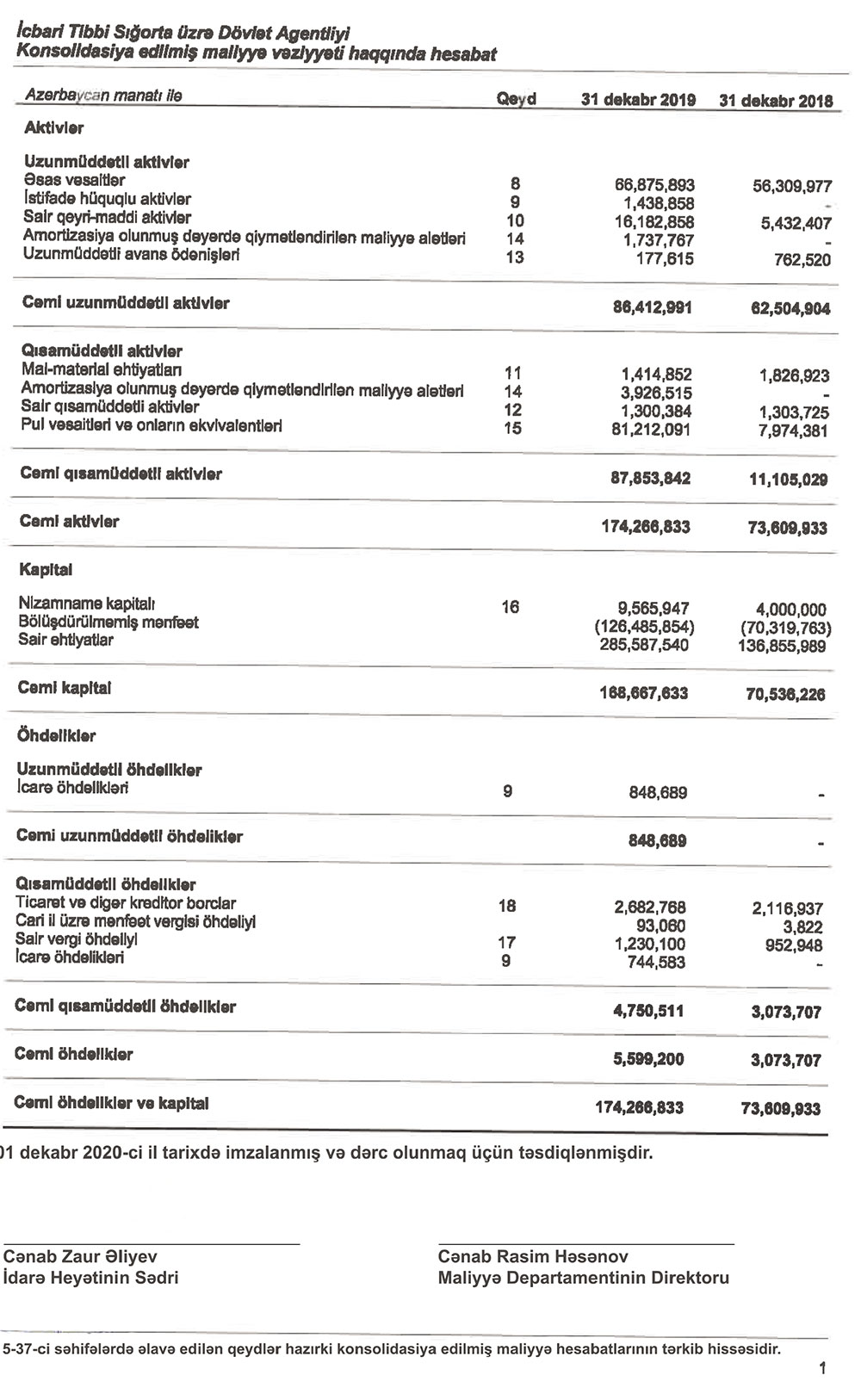 2020-ci il yanvarın 1-nə Agentliyin aktivləri 174 milyon 167 min manat olub ki, bu da illik müayisədə 2,4 dəfə çoxdur. Hesabat dövründə qurumun öhdəlikləri 82,1% artaraq 5 milyon 599 min manata, balans kapitalı isə 2,4 dəfə artaraq 168 milyon 667 min manata, o cümlədən nizamnamə kapitalı 2,4 dəfə artaraq 9 milyon 566 min manata çatıb.