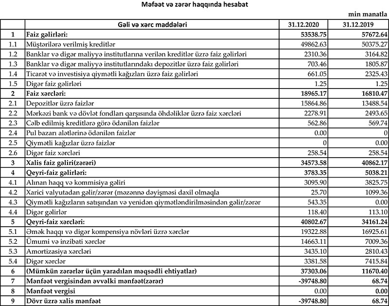 Yelo Bank 2020-ci ilin 9 ayını 23 milyon 192 min manat xalis zərər ilə bağlamışdı. 2020-ci ilin 4-cü rübündə Bankın xalis zərəri 16 milyon 556 min manat təşkil edib.