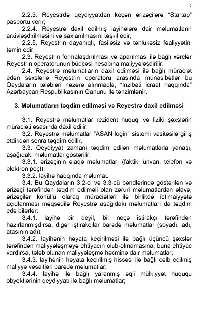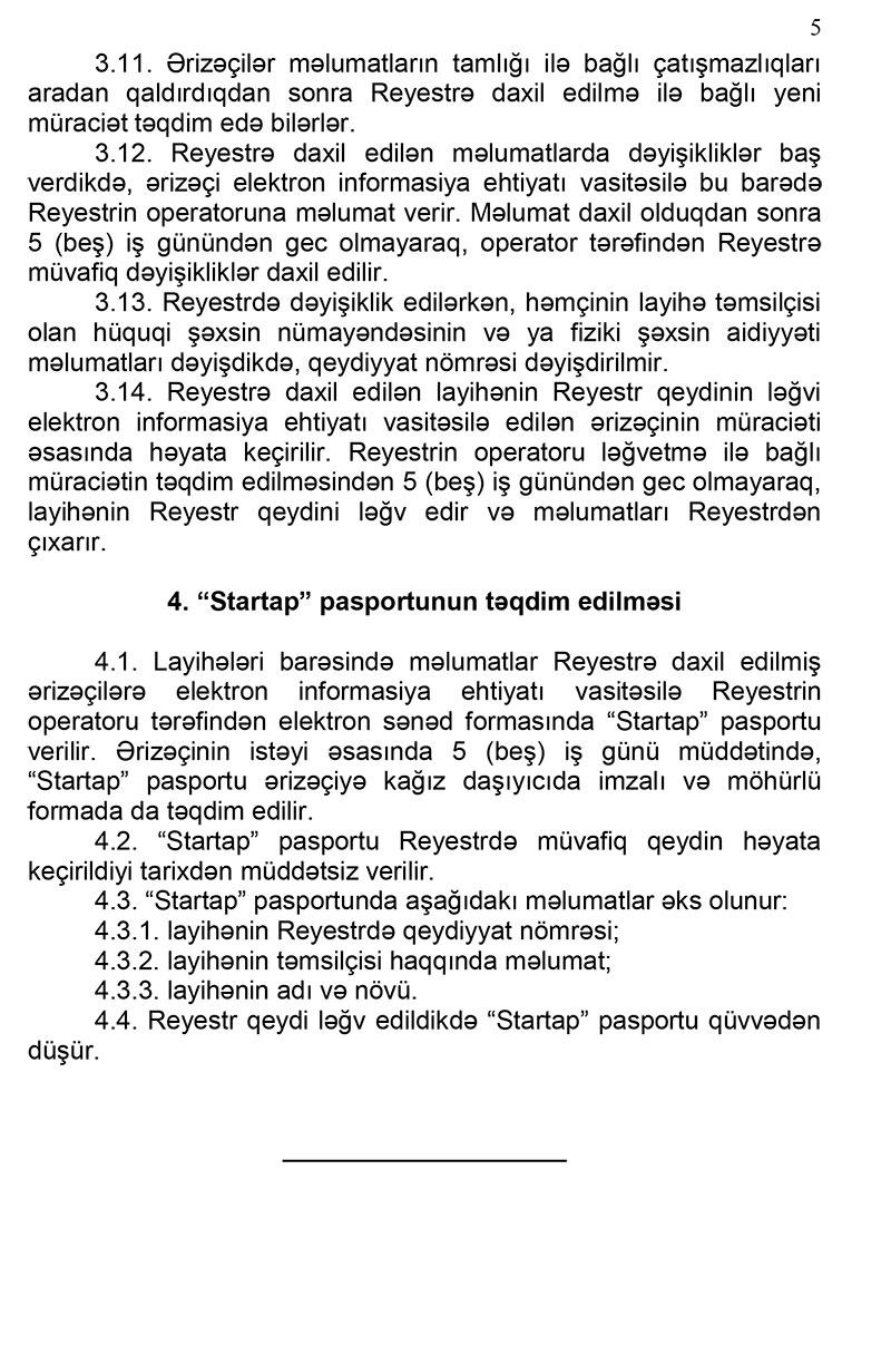 Marja xəbər verir ki, qərarlar ilə “İnnovativ layihələrin ictimaiyyət üçün açıq reyestrinin aparılması və “Startap” pasportunun verilməsi Qaydaları” və “Startapın müəyyən olunması meyarları təsdiq edilib.