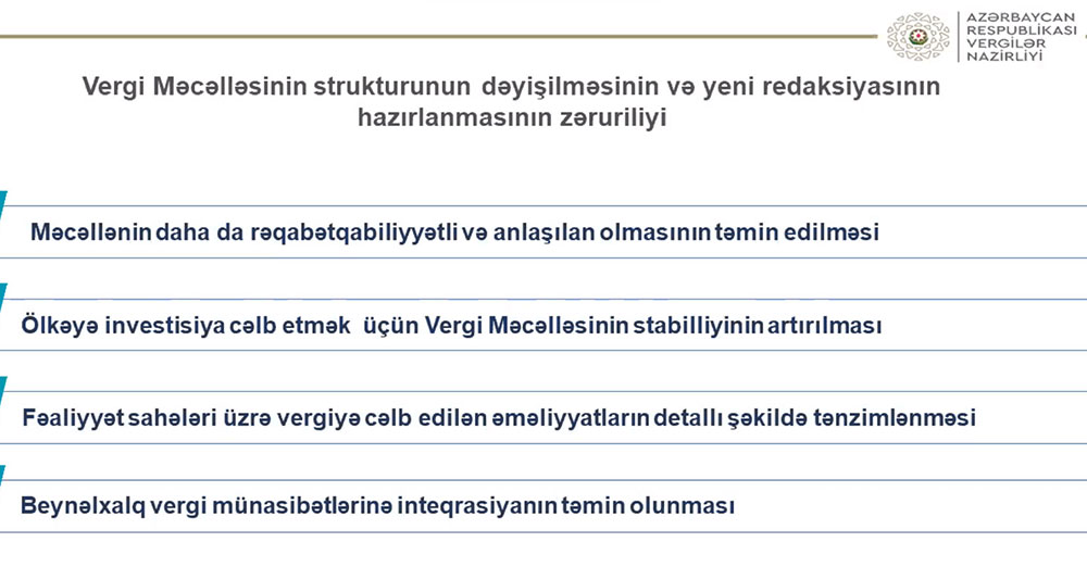 - Vergi qanunvericiliyi beynəlxalq təcrübəyə uyğunlaşdırılacaq,