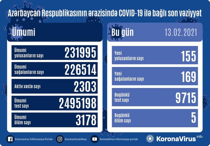 Qeyd edək ki, 12 Fevral 2021-ci il tarixində 191 yoluxma faktı qeydə alındığı açıqlanmışdı.