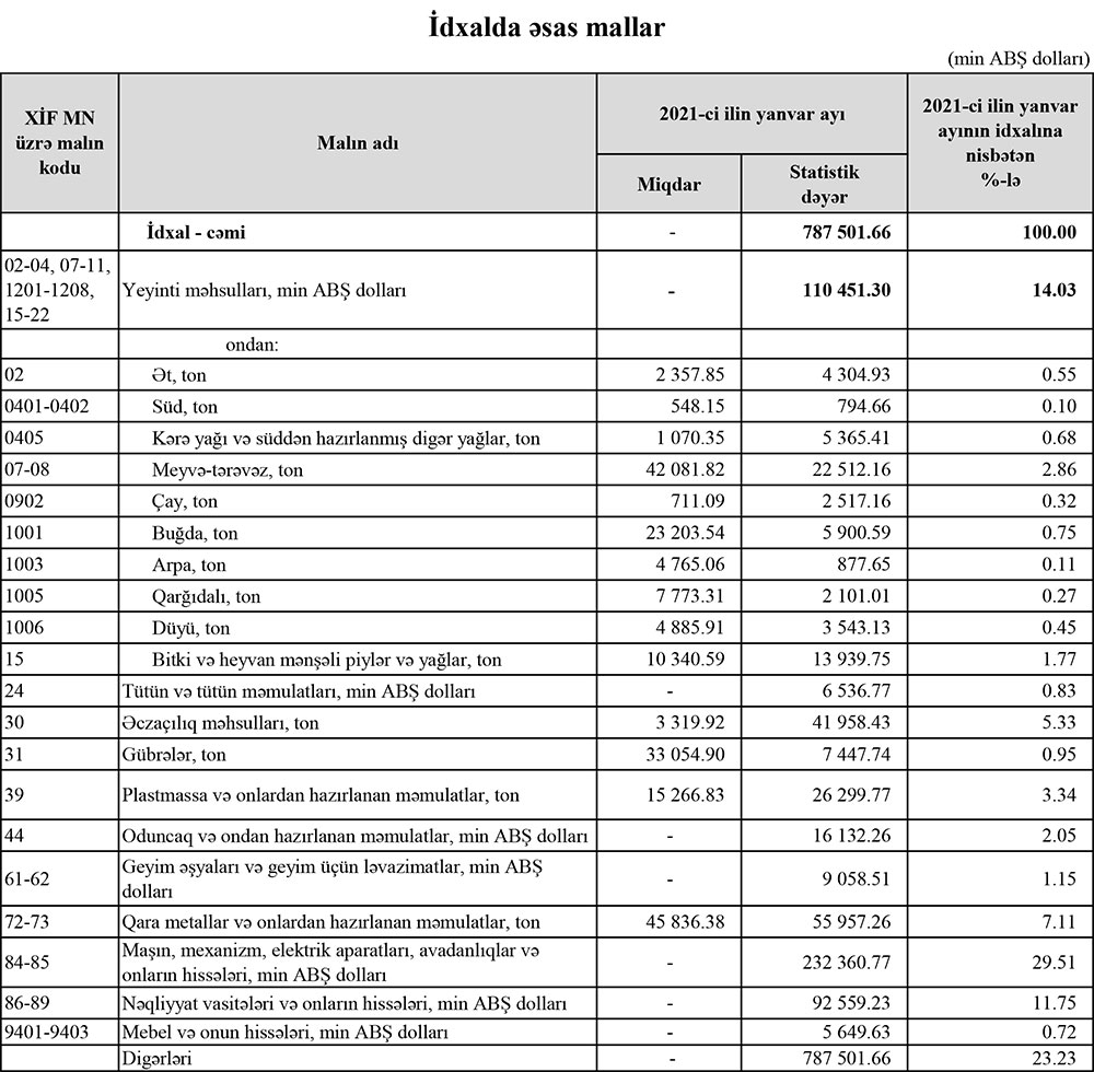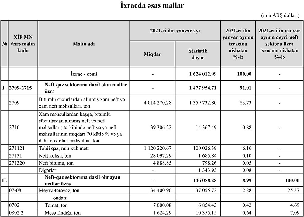 2021-ci ilin Yanvar ayında Azərbaycanın ən çox ixrac və idxal etdiyi mallar.