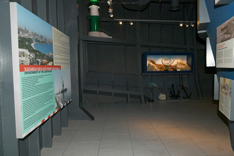 Muzeydə dünyaca üç məşhur dəniz mayakının modelləri ilə tanış olmaq imkanı da var. Naviqasiya masasında ziyarətçilər Xəzərdə üzən gəmilərin marşrutu, xarici kommunikasiya və naviqasiyaları ilə tanışlıq fürsəti əldə edəcəklər. Burada keçmişə səyahət də mümkündür. Ötən əsrin ortalarına səyahət edən ziyarətçilər gəminin maşın şöbəsində çalışan heyətin gündəlik iş həyatı ilə yaxından tanış olacaqlar. Tanker-muzeyin maraqlı ekspozisiyalarından biri də okean və dənizlərdən yığılan flora və fauna nümunələrinin sərgiləndiyi guşədir.