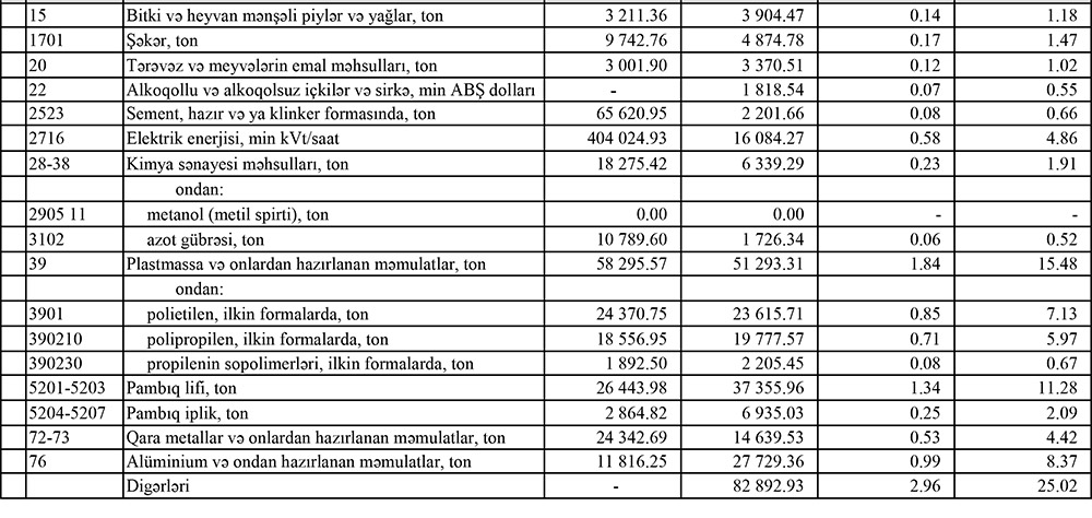 Azərbaycanın ən çox idxal və ixrac etdiyi mallar