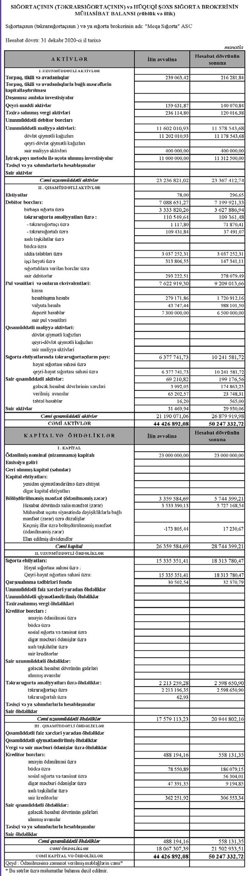 “Meqa Sığorta” ASC 2020-ci ili 5 milyon 727 min manat xalis mənfəət ilə başa vurub. Halbuki, şirkət 2019-cu ili 3 milyon 533 min manat xalis mənfəət ilə bağlamışdı.