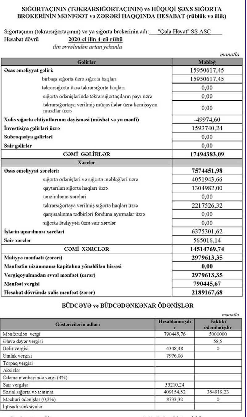 “Qala Həyat”ın illik sığorta ödənişləri isə 6 milyon 262 min manatdan 4 milyon 52 min manata geriləyib.