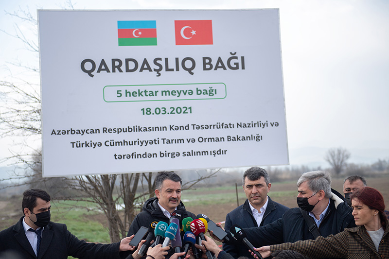 Daha sonra Azərbaycan Kənd Təsərrüfatı Nazirliyi və Türkiyənin Kənd Təsərrüfatı və Meşə Nazirliyinin təşkilatçılığı ilə Zəngilan rayonunun Ağalı kəndində “Qardaşlıq bağı” salınıb. Kənd təsərrüfatı naziri İnam Kərimov, Türkiyənin kənd təsərrüfatı və meşə naziri Bekir Pakdemir, Ekologiya və Təbii Sərvətlər nazir Muxtar Babayev “Qardaşlıq bağı”nda meyvə tingləri əkiblər. 5 hektar sahədə yerləşən bağda ərik, alma, armud, gilas, albalı və digər meyvə tingləri əkilib. Bağda ümumilikdə 2620 ting əkini həyata keçirilib.