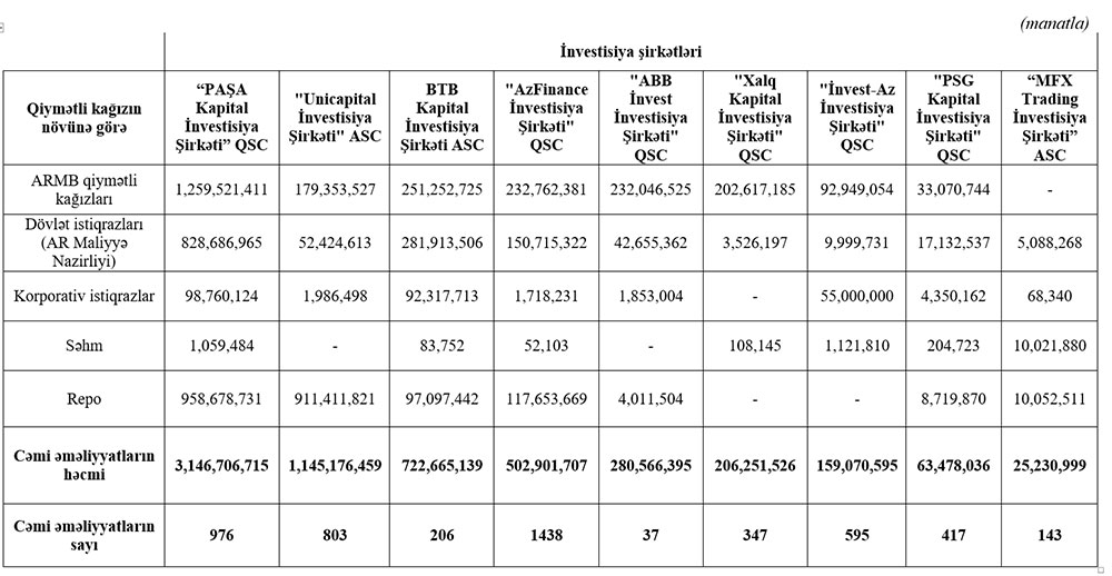 İnvestisiya şirkətlərinin dövriyyələri açıqlandı - SİYAHI