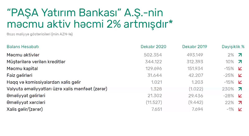 Marjanın məlumatına görə, “PAŞA Bank”ın ötən ilki fəaliyyətinin və 2018-2020-ci illəri əhatə edən Strateji dövrünün nəticələrinə həsr olunan mətbuat konfransında Bankın İdarə Heyətinin Üzvü, Baş Maliyyə İnzibatçısı Bəhruz Nağıyev bildirib ki, xalis zərərin səbəbi investisiyalar ilə bağlıdır: