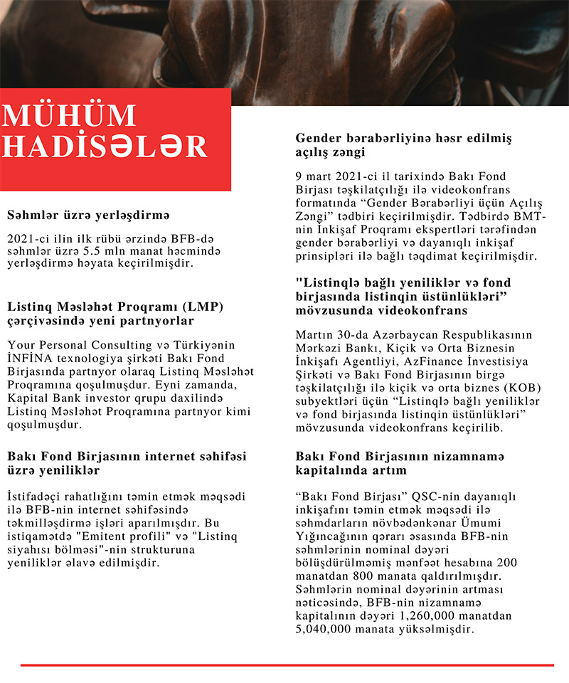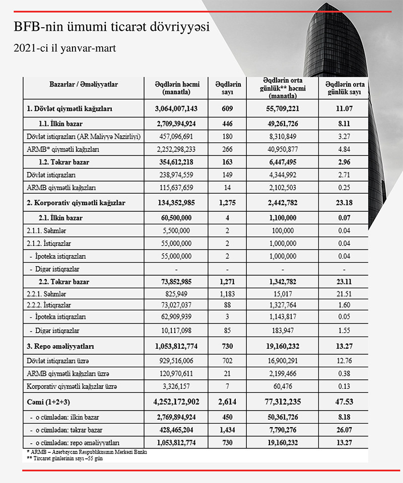 Bakı Fond Birjasından 2021-ci ilin 1-ci rübü üzrə hesabat