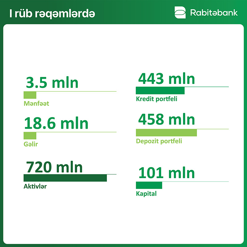 “Rabitəbank” ilin birinci rübünü mənfəətlə başa vurubÖlkənin aparıcı banklarından olan “Rabitəbank” 2021-ci ilin ilk rübü üzrə maliyyə göstəricilərini açıqlayıb.