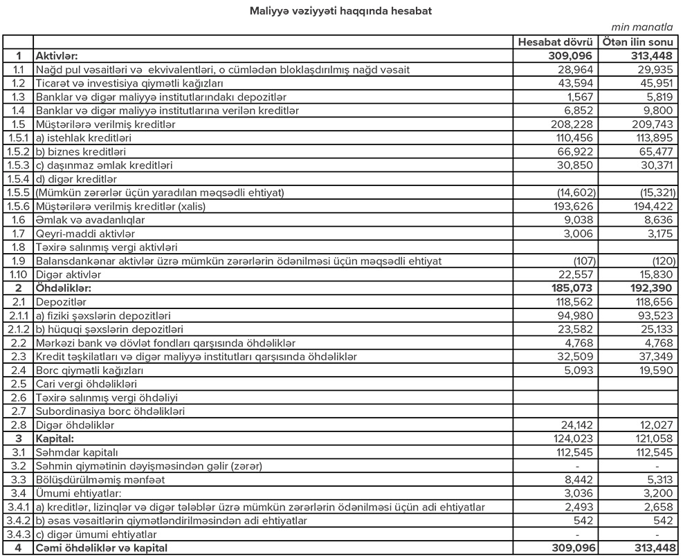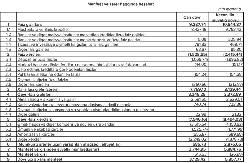 “Expressbank” ASC 2021-ci ilin ilk rübünü 3 milyon 129 min manat xalis mənfəət ilə başa vurub. Maliyyə göstəriciləri Bankın maliyyə cəhətdən sağlam və dayanıqlı olduğunu göstərir.