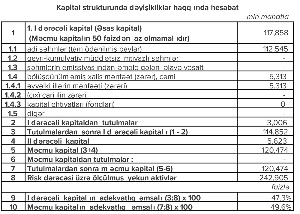 “Expressbank” 31 Mart 2021-ci il tarixində 120 milyon 474 min manat məcmu kapitala malik olub.