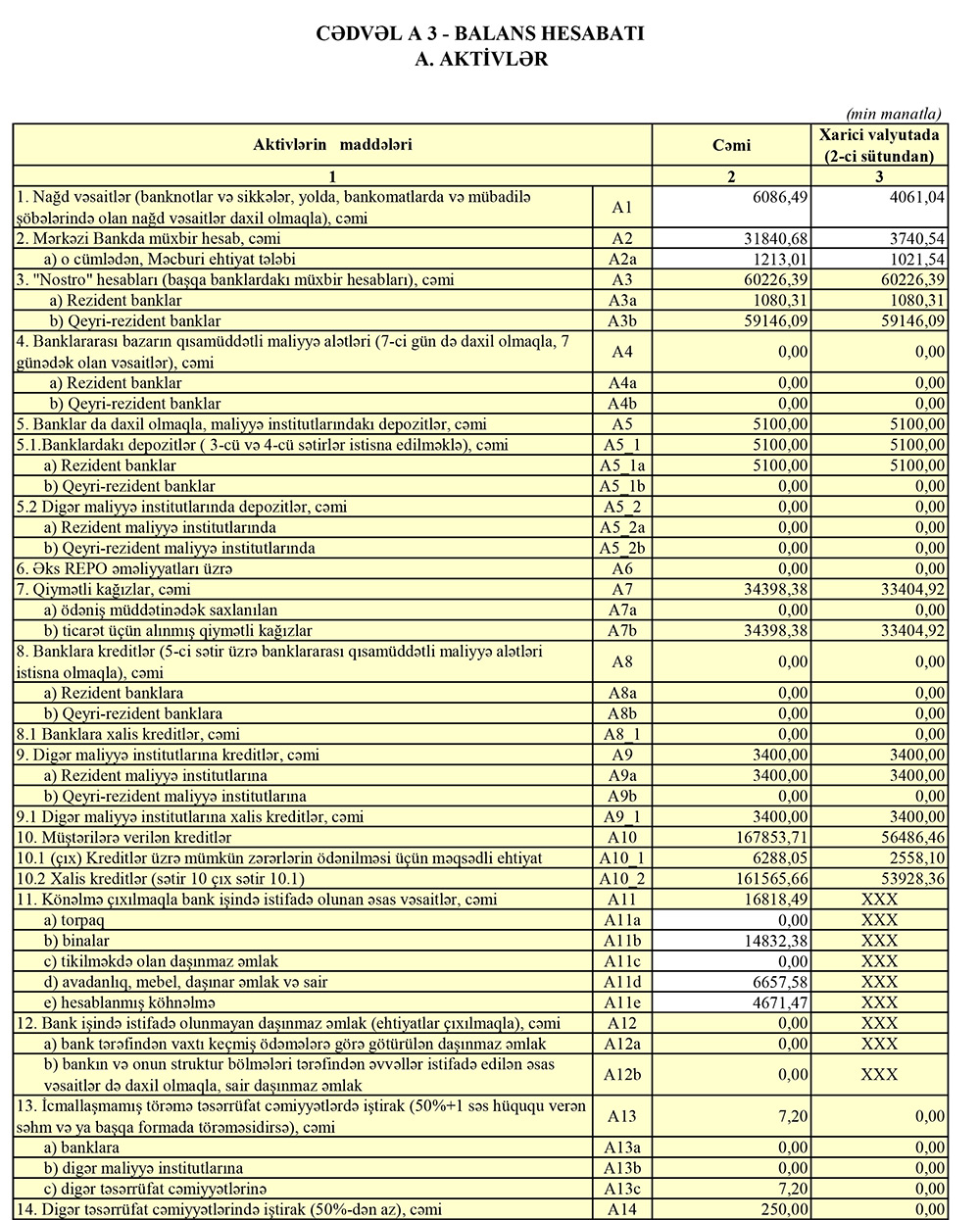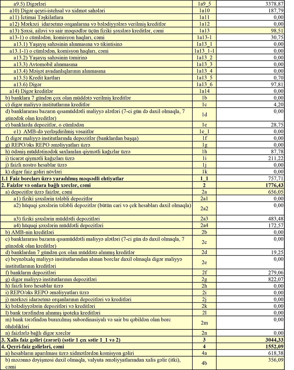 İlk rübdə Bankda cəmi depozitlər isə 151 milyon 868 min manatdan 181 milyon 242 min manata yüksəlib (29 milyon 374 min manat artım).