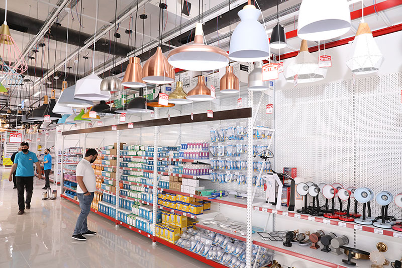 Mağaza daxilində müştərilərin rahat seçimi və vaxtlarına qənaət etmələri üçün boya, yapışdırıcı, plastik boru və fitinqlər, gips, alçı, o cümlədən məşhur markalara məxsus istilik sistemləri, divar kağızları, çilçıraqlar, müxtəlif növdə elektrik, məişət malları, ev aksesuarları, ən müasir usta alət və texnikalarının sərgiləndiyi xüsusi bölmələr qurulub.