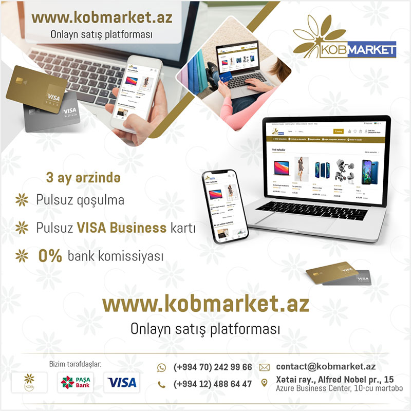 Artıq hər bir sahibkar Kobmarket.az-da qeydiyyatdan keçərək, mallarını və xidmətlərini özünün onlayn mağazası vasitəsilə satmağa başlaya bilər.Birləşmiş Millətlər Təşkilatının Ticarət və İnkişaf Konfransının son hesabatına əsasən, pandemiya dünya miqyasında internet satışların artmasına əhəmiyyətli dərəcədə təsir edərək elektron ticarətin əsl katalizatoruna çevrildi. Bu gün bir çox şirkətlər onlayn satış üçün öz platformalarını yaratmağa çalışırlar. Yeni Kobmarket.az internet platformasının təsisçiləri qarşılarına - Azərbaycanda hər bir sahibkar üçün istifadəsi mümkün ola biləcək e-ticarətin yaradılması kimi bir hədəf qoymuşdular. Artıq hər bir sahibkar Kobmarket.az-da qeydiyyatdan keçərək, mallarını və xidmətlərini özünün onlayn mağazası vasitəsilə satmağa başlaya bilər.