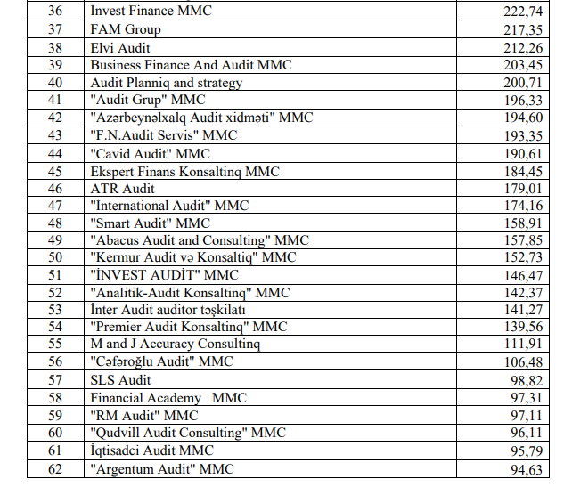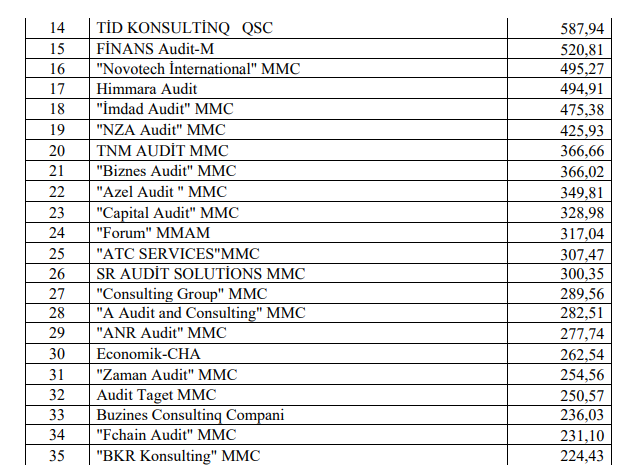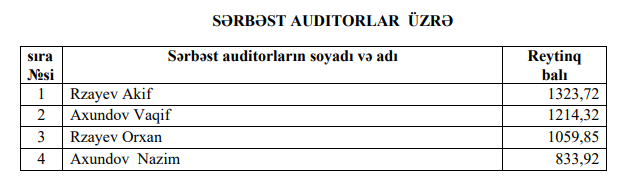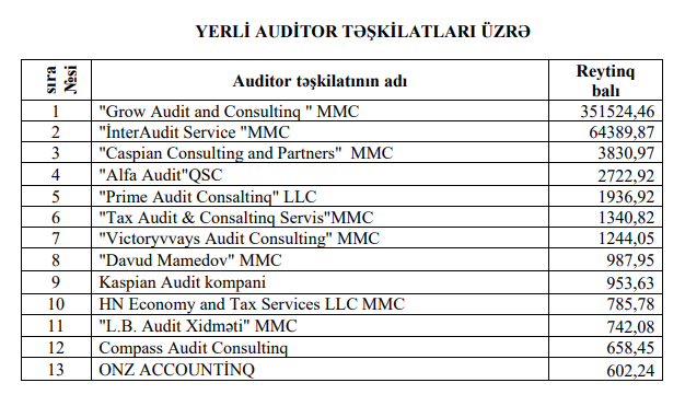 Azərbaycanda auditorların reytinqi açıqlanıb