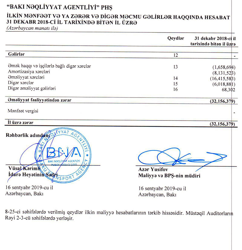 Bakı Nəqliyyat Agentliyi ilk dəfə maliyyə hesabatını açıqladı – ZƏRƏRLƏ İŞLƏYİB