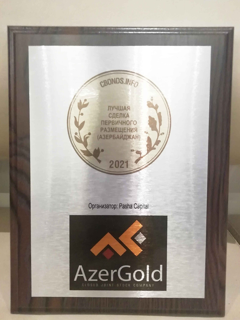 ®️İyunun 24-də “AzerGold” Qapalı Səhmdar Cəmiyyəti (QSC) “Azərbaycanın ən yaxşı ilkin istiqraz yerləşdirilməsi” nominasiyası üzrə “Cbonds Awards 2021” mükafatına layiq görülüb.
