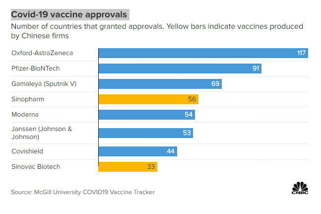 Maraqlı məqam isə ondan ibarətdir ki, Böyük Britaniya istisna olmaqla, bu 6 ölkədən 5-i peyvənd kimi Çin vaksinindən istifadə edir. Böyük Britaniya isə AstraZeneca peyvəndinə üstünlük verib. Monqolustanda 2,3 milyon, Çilidə 17 milyona yaxın doza Çin peyvəndi vurulub. BƏƏ, Uruqvay və Seyşel adaları da son dövrə kimi ən çox Çin peyvəndindən asılı olub. Belə olan halda Çin və Britaniya peyvəndinin effektivliyi sual doğurur...