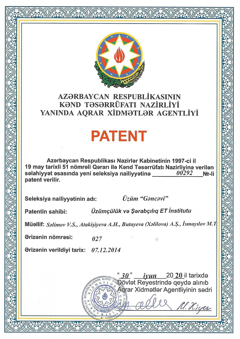 “Gəncəvi” adlandırılan üzüm sortu Kənd Təsərrüfatı Nazirliyi yanında Aqrar Xidmətlər Agentliyi tərəfindən dövlət reyestrində qeydə alınıb.
