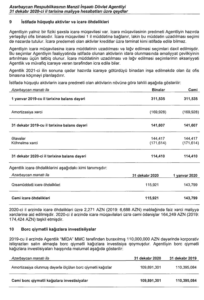 Azərbaycan Respublikasının Mənzil İnşaatı Dövlət Agentliyi (MİDA) 2020-ci ili 5 milyon 223 min 947 manat xalis mənfəət ilə başa vurub. Bu, 2019-cu illə müqayisədə cüzi azdır. Agentlik 2019-cu ili 5 milyon 339 min 699 manat xalis mənfəət ilə bağlamışdı. Ötən ilin xalis mənfəəti daxil MİDA-nın bölüşdürülməmiş xalis mənfəəti 13 milyon 578 min 474 manata çatıb.