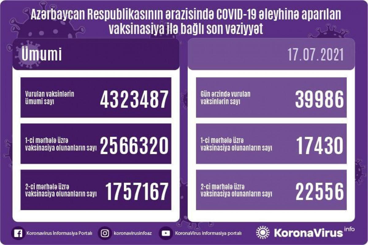 Son sutka ərzində yeni yoluxma hallarının müəyyənləşdirilməsi ilə əlaqədar 10 817, bu günə qədər isə ümumilikdə 3 905 500 test icra olunub.