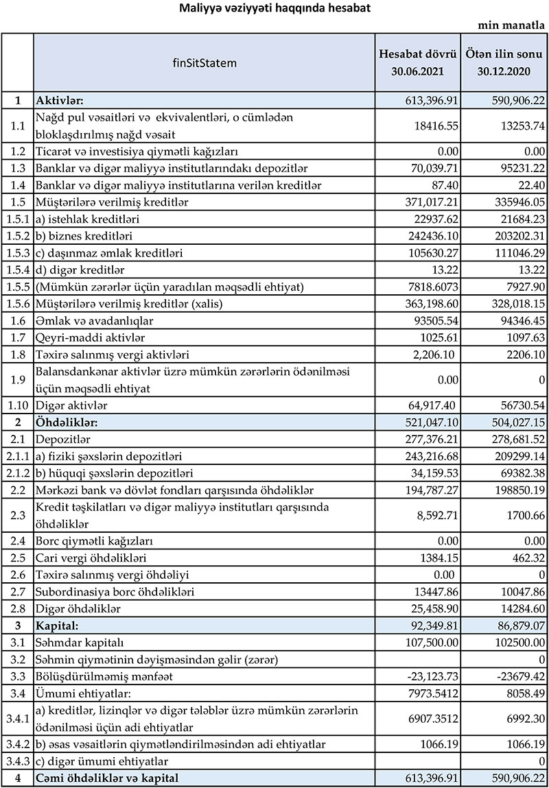 "Muğan Bank" ASC 2021-ci ilin 1-ci yarısını (yanvar - iyun dövrünü) 556 min manat xalis mənfəət ilə başa vurub. Halbuki, Bank ötən ilin eyni dövrünü 1 milyon 881 min manat xalis zərər ilə bağlamışdı.